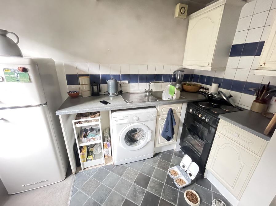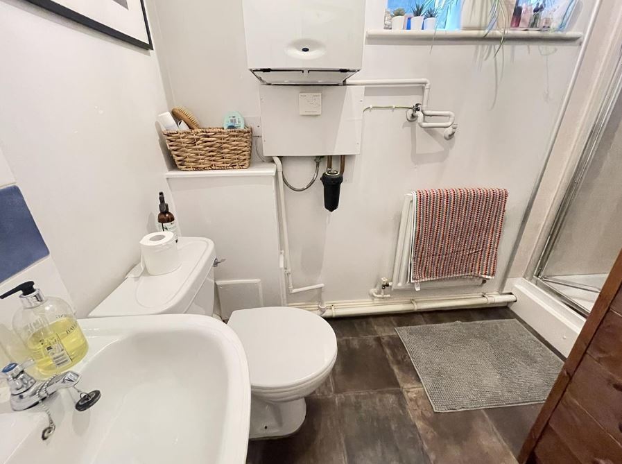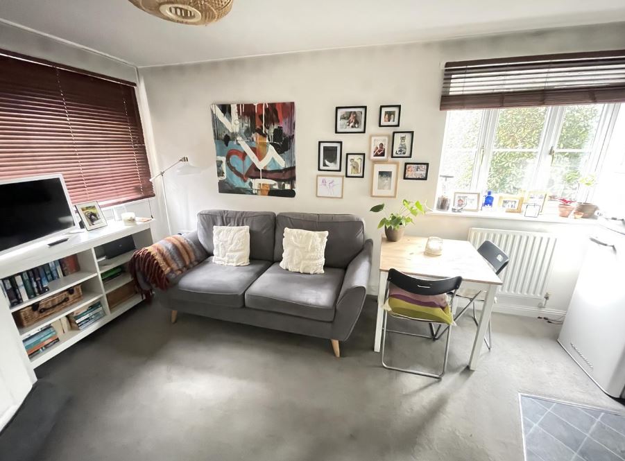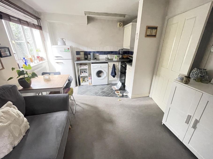 A front door gives access to an entrance hall with a door leading into the lounge/kitchen which has double aspect windows, work surface with inset sink and drainer, cooker, base and wall cupboards, plumbing and space for washing machine and further appliance space. A door leads through to the double bedroom and another door to the ensuite shower room which has a cubicle with thermostatic shower, wc and hand basin. There is also a wall mounted, recently installed combination Worcester gas fired boiler for heating and hot water. To the rear of the property is a car parking area for Railway Court.